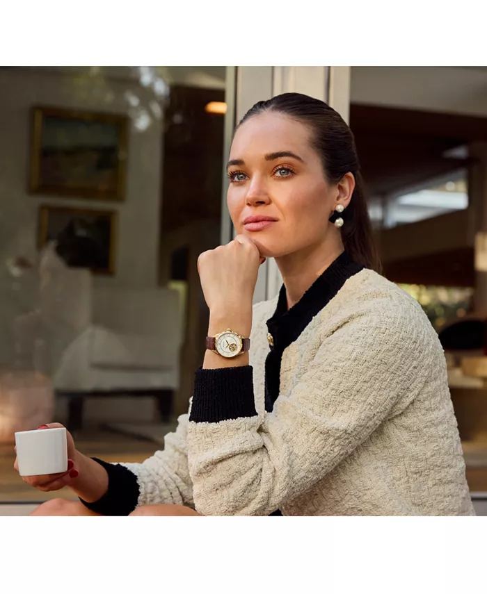 Женские часы Sutton Automatic с коричневым кожаным ремешком, 34.5 мм Bulova 48 426₽