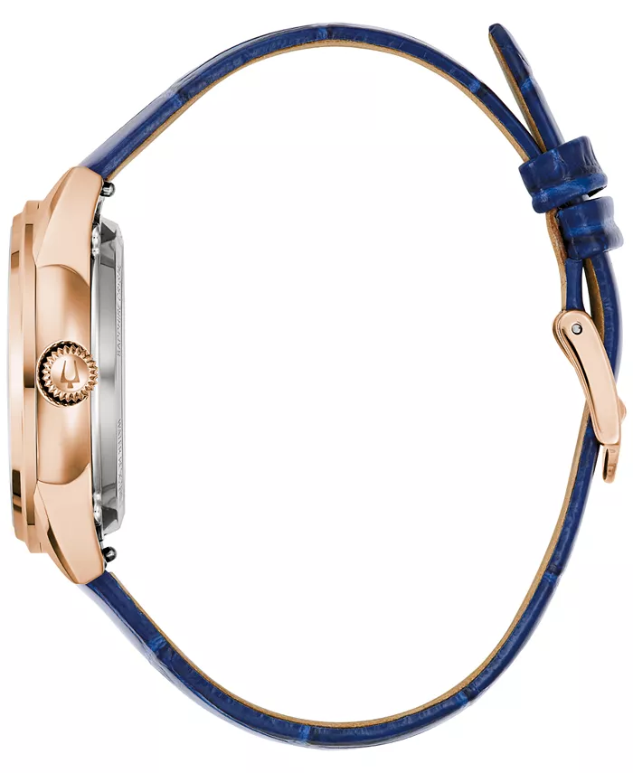 Женские часы Sutton Automatic с синим кожаным ремешком, 34.5 мм Bulova