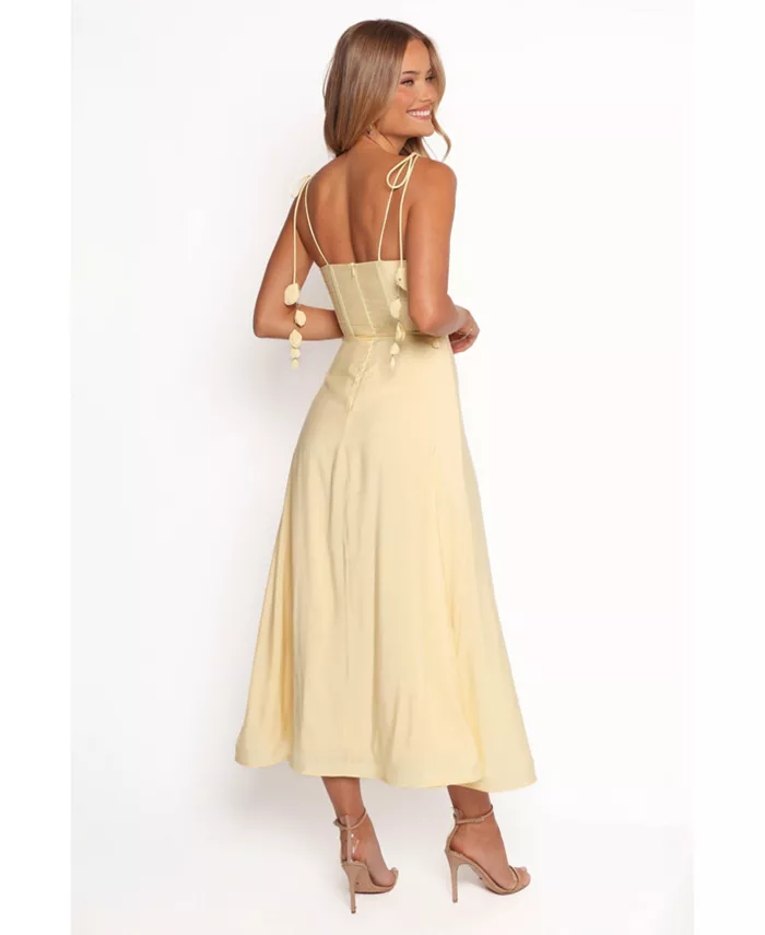 Погрузитесь в непринужденную элегантность с платьем Della Midi в желтом цвете. Идеально сконструированное для баланса между шиком и комфортом, это платье имеет льстящий вырез в форме сердца и тонкие завязывающиеся бретели для индивидуальной посадки.