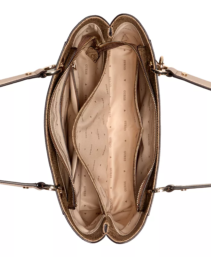 Создайте смелый образ с помощью этой сумки-тоут с принтом логотипа GUESS, культовым повторяющимся узором, блестящей фурнитурой и просторным внутренним пространством для стильного повседневного ношения.