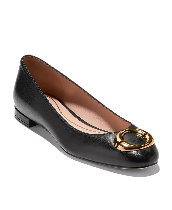 Фурнитура сияет на сдержанном силуэте, добавляя интереса простому образу без застежек в туфлях Skylar от Cole Haan.