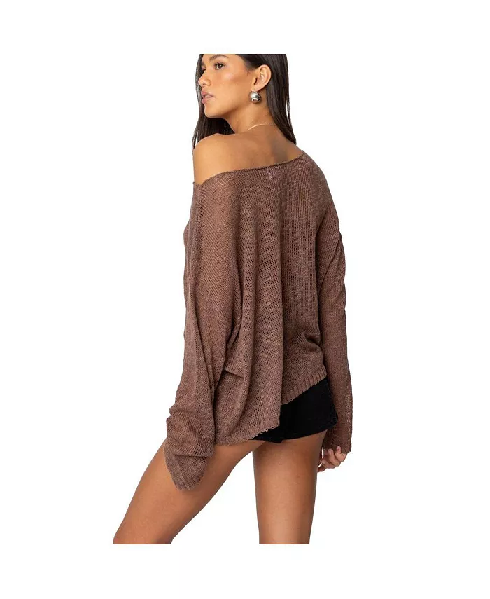 Женский оверсайз свитер Bri с лодочкой Edikted, коричневый