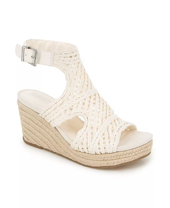Носок с макраме придает эстетику бохо-шика этим босоножкам-эспадрильям Kenneth Cole Reaction Chloe на танкетке.