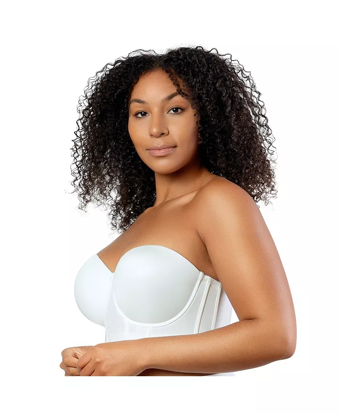 Этот стильный, без бретелек, удлиненный бюстгальтер имеет легкие пенопластовые, гладкие чашки. Силиконовая резинка на вырезе и в верхней части спины удерживает чашки на месте. Многочисленные крючки и петли удлиненной застежки на спине обеспечивают гладкость и максимальную поддержку, идеально подходящую для женщин с полной фигурой и пышной грудью.