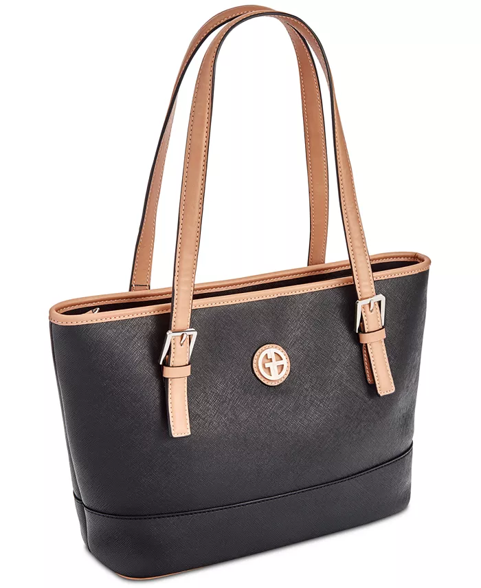 Эта повседневная сумка-тоут классического силуэта, которая идеально впишется в любой ваш гардероб, изготовлена ​​из искусственной сафьяновой кожи и украшена блестящей пластинкой с логотипом Giani Bernini.