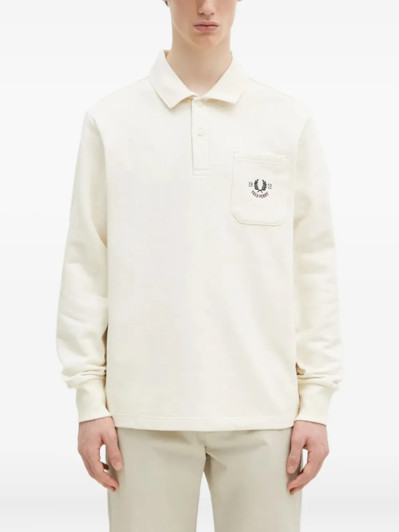 Рубашка поло с длинными рукавами и вышитым карманом Fred Perry, белый