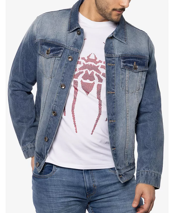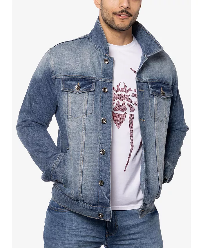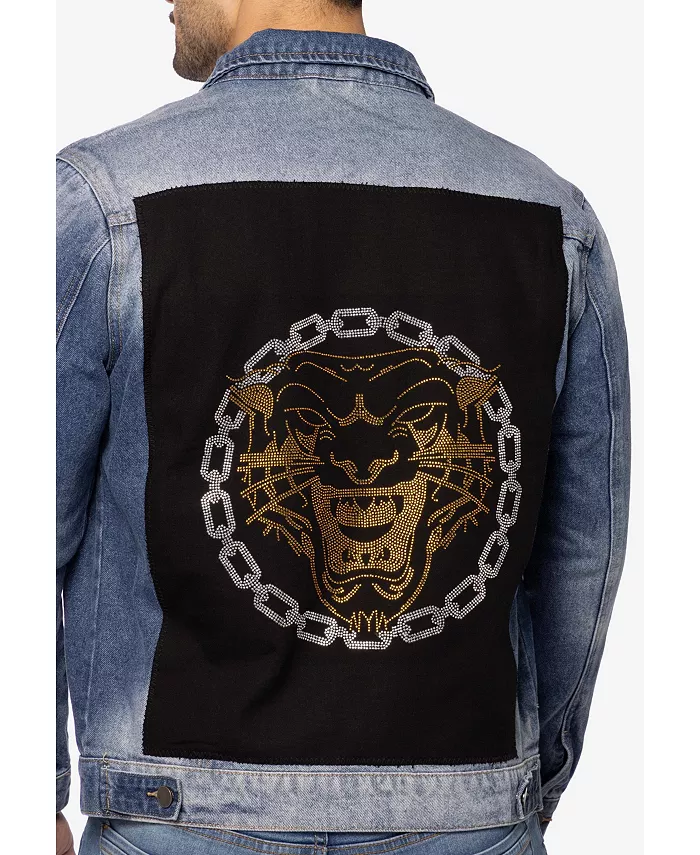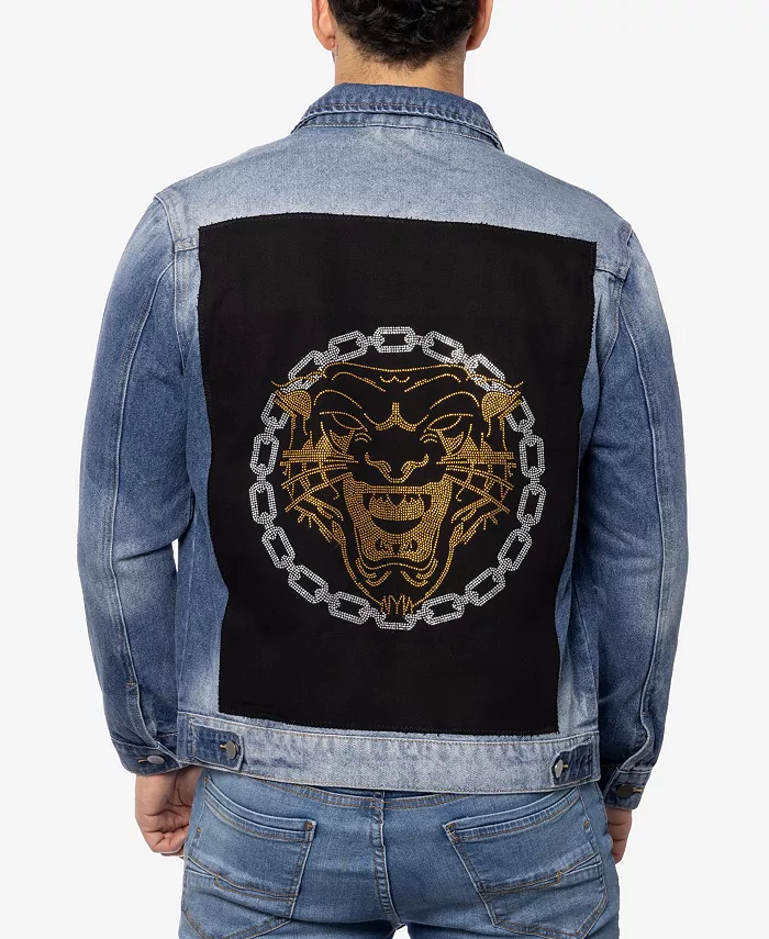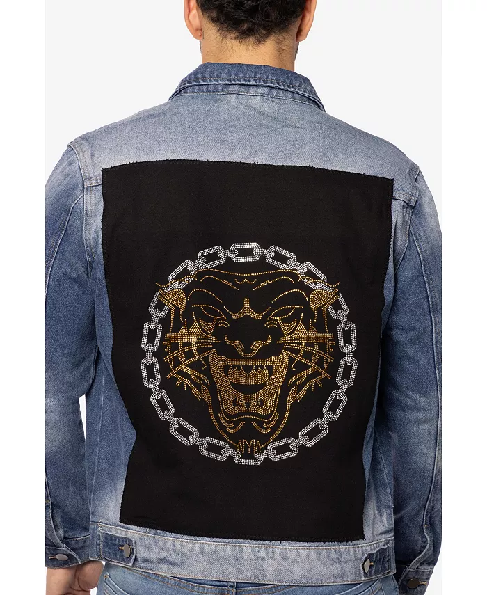Мужская джинсовая куртка с принтом и стразами SPRING + MERCER, синий