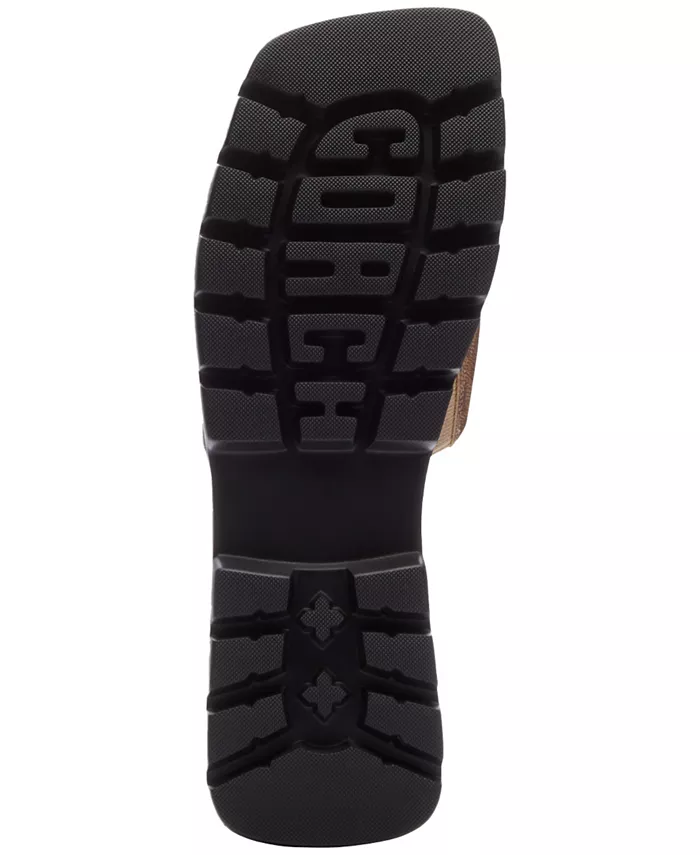 Квадратный носок и рифленая подошва придают шлепанцам COACH Florence современный стиль, облегчающий надевание.