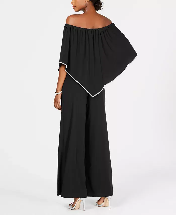 Струящаяся накидка украшена сверкающими стразами на этом комбинезоне с открытыми плечами от MSK.