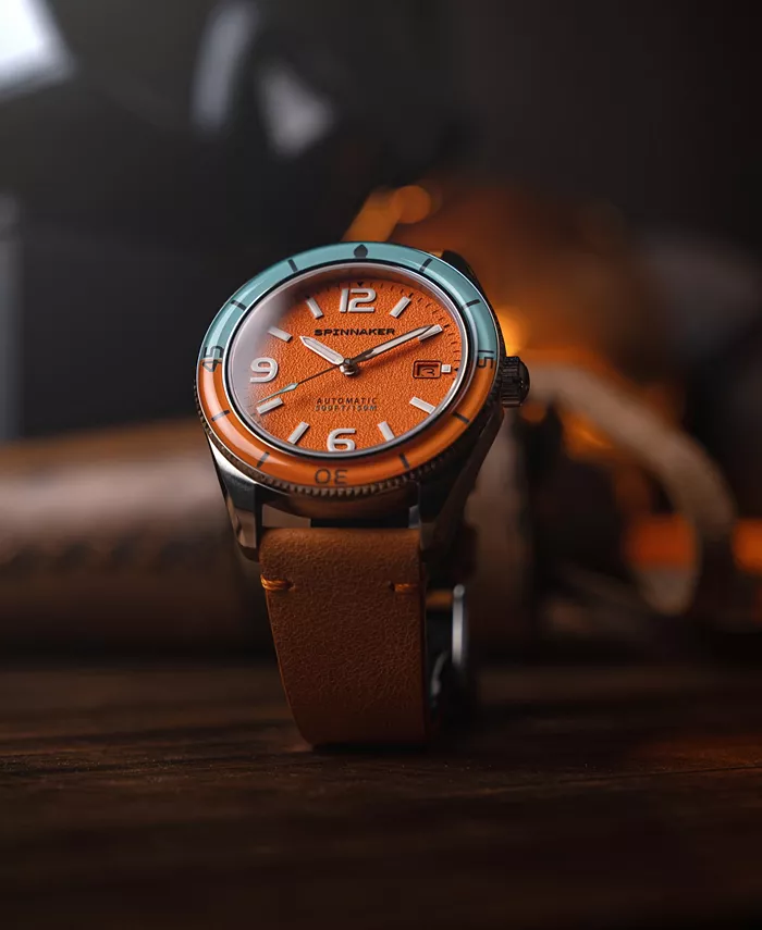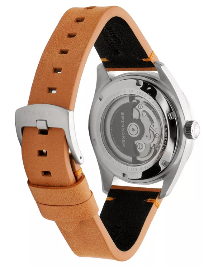 Мужские часы Fleuss Automatic с оранжевым кожаным ремешком, 43 мм Spinnaker