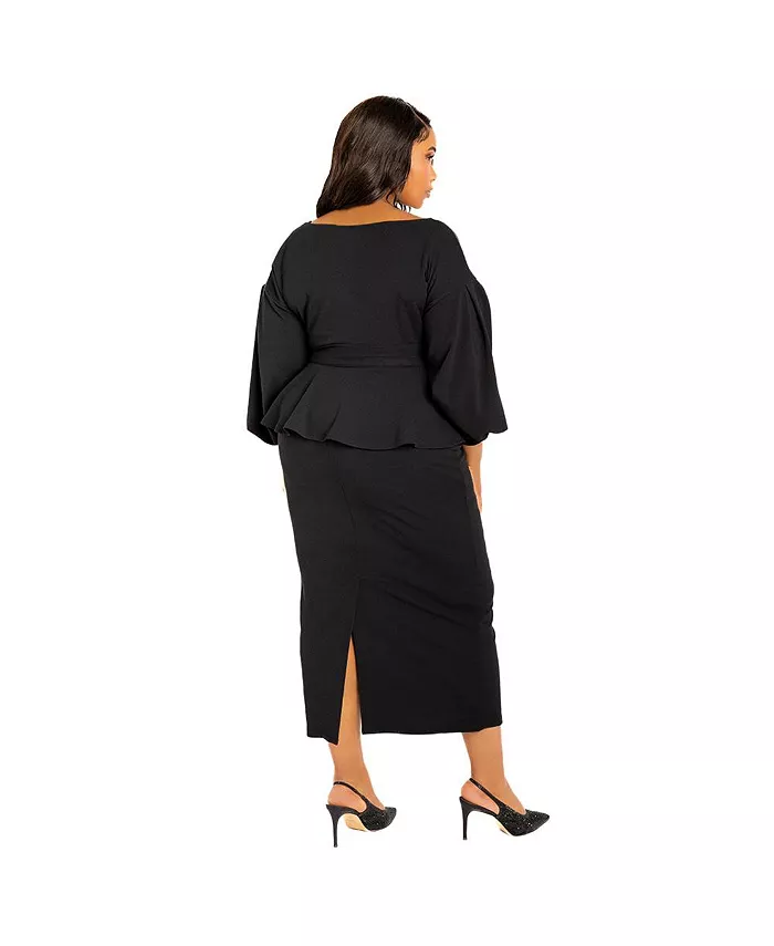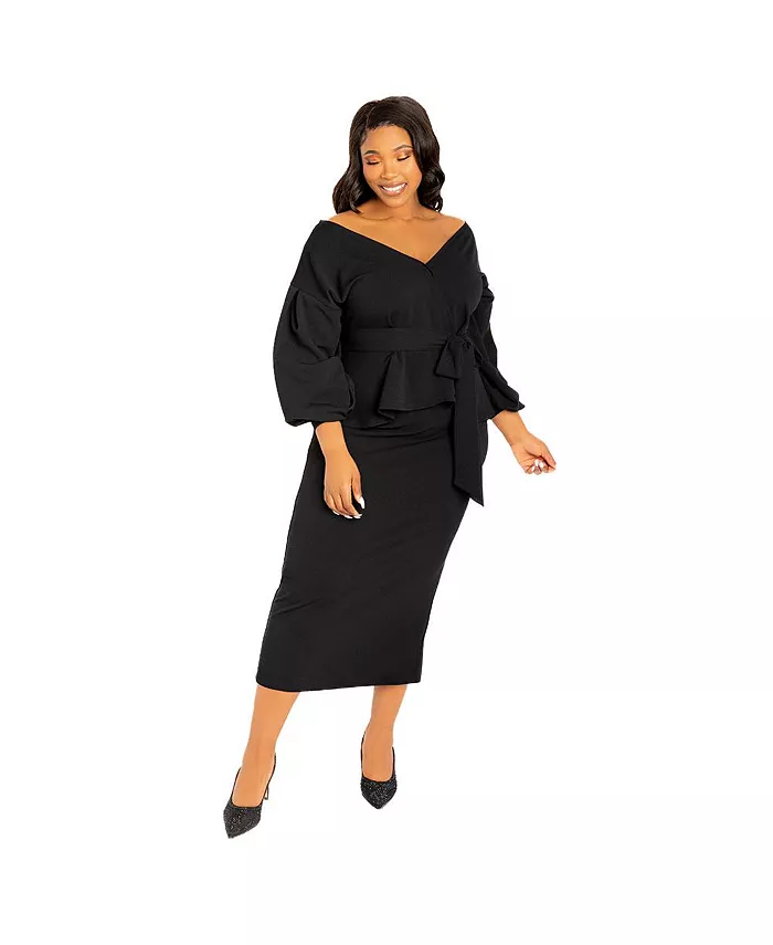Женское платье миди с открытыми плечами и баской Plus Size Buxom Couture, черный