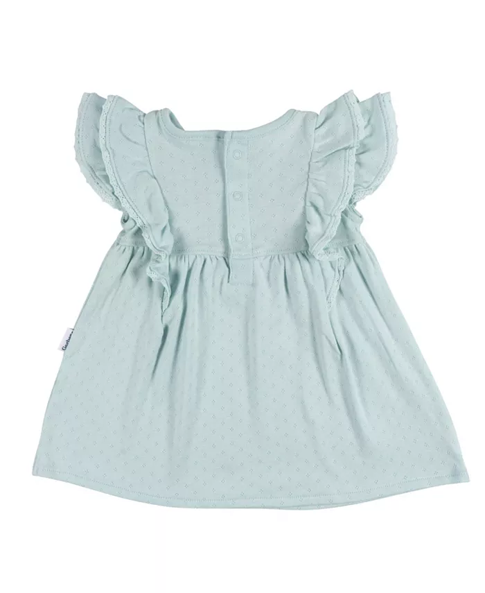 В комплект входит платье с оборкой по подолу и соответствующий чехол для подгузника. Мягкий и воздушный, идеально подходит для солнечных дней. Элегантные оборки на плечах Округлый вырез горловины для удобной посадки Номер сертификата OEKO-TEX: 20.HIN.17663 HOHENSTEIN HTTI. 100% хлопок, ромбовидная ажурная резинка Можно стирать в стиральной машине
