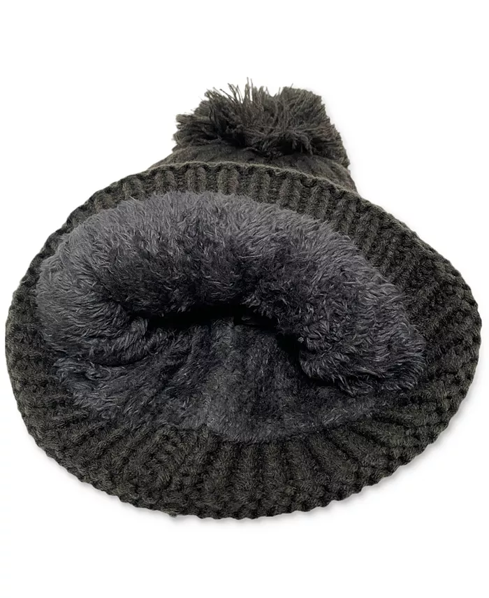 Зимняя шапка-бини с косичной вязкой и пушистым помпоном от Angela & William, с подкладкой из шерпы, согревающей в холодную зиму.