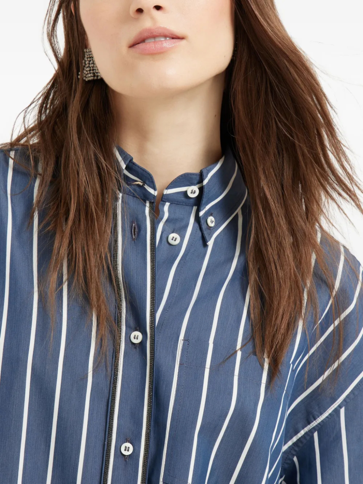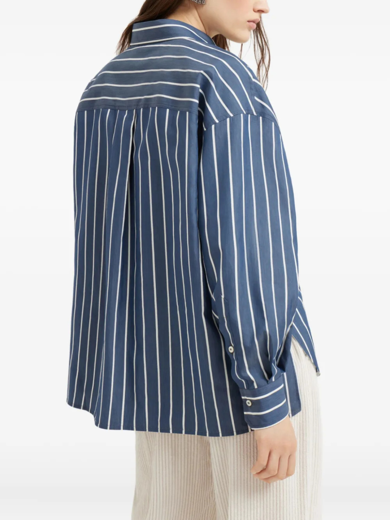 Рубашка из поплина в полоску Brunello Cucinelli, синий
