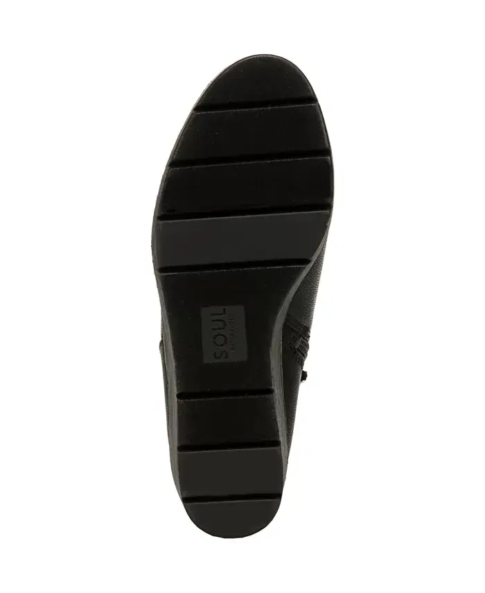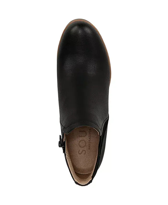 Туфли на танкетке SOUL Naturalizer // Прохладные дождливые дни, встречайте свою пару. Ботинки на танкетке Weather Ready никуда не денутся. Водоотталкивающие ботильоны с эластичными деталями. Подходит для: небольшого дождя. Водоотталкивающий синтетический верх с подкладкой и закрытым круглым носком. Боковая застежка-молния и эластичная вставка для дополнительной гибкости. Технология ContourFIT: скульптурная стелька, мягкая пенная подкладка, поддержка свода стопы с пеной с эффектом памяти, подкладка носка, легкая и гибкая подошва. Резиновая подошва с цепкостью для сопротивления скольжению. Платформа 0,75 дюйма, каблук-танкетка 2,5 дюйма. Высота ботинка 3,15 дюйма; окружность 9,69 дюйма. Примечание: измерения основаны на размере ботинка 6M. На каждую половину размера больше высота голенища увеличивается на 0,12 дюйма, окружность на 0,20 дюйма. ПОЧЕМУ ВАМ ПОНРАВИТСЯ: Из нашей коллекции Weather Ready // Серия Water-repellent. Практичные модели, выполненные из высококачественных материалов и оснащенные роскошной подкладкой, помогут вам оставаться сухими и отлично выглядеть в течение всего дня.