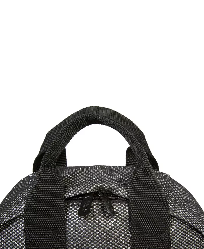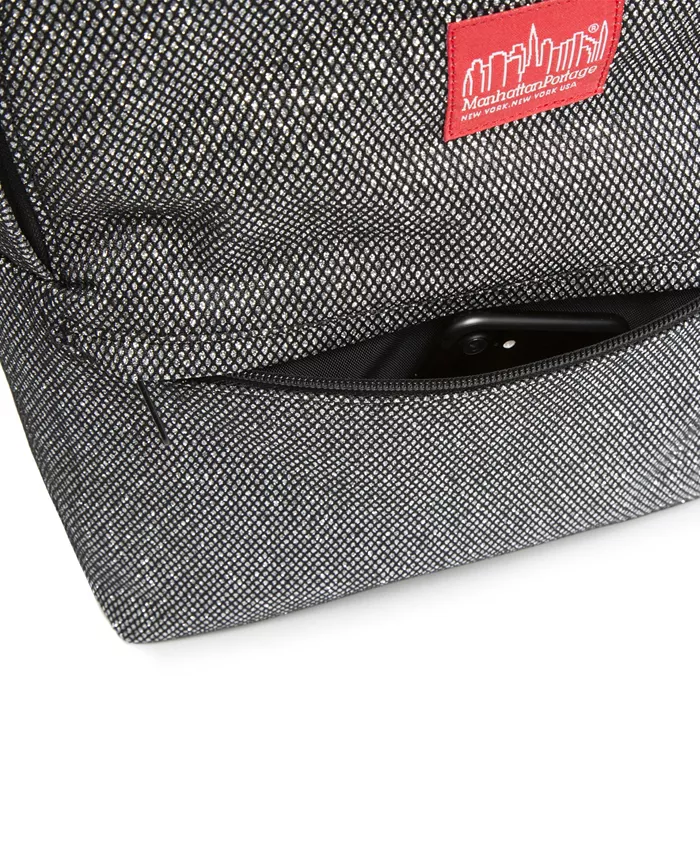 Этот рюкзак представляет собой вместительную сумку с фактурной внешней поверхностью, переплетенной с красивой блестящей тканью, которая легко превращается из сумки для работы и учебы в сумку для отдыха на выходных.