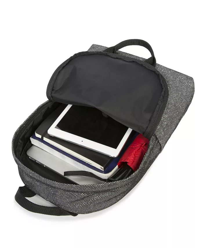 Внутренний разделитель вмещает ноутбук или планшет с диагональю до 13 дюймов в зависимости от марки ноутбука, имеет плоское переднее отделение на молнии, верхнюю ручку для удобства захвата и переноски, привлекающие внимание блестящие тканевые накладки на плечевые ремни с сетчатой ​​задней панелью.