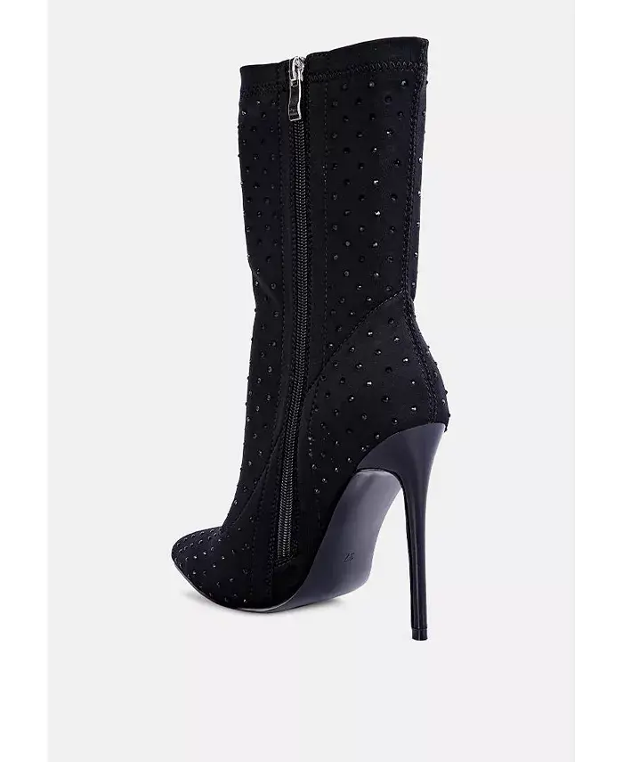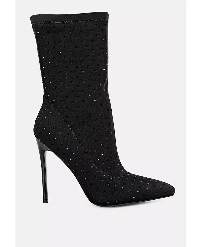 Украшенные ботильоны Cheugy украшены стразами, которые выделяют их из толпы из миллиона. Это высокие эластичные лайкровые ботинки с закрытым острым носком. Эти каблуковые ботинки ослепят толпу, сделав из вас ту Boss Babe, которой вы заслуживаете.