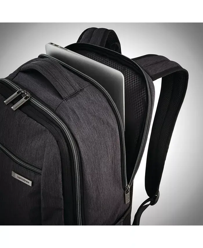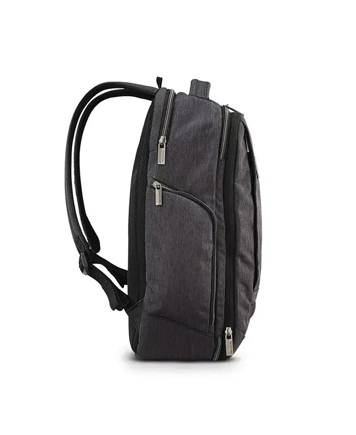 Мягкое отделение для ноутбука вмещает ноутбук с диагональю до 17 дюймов. Расширение 2,5" для дополнительной емкости Внутренний карман для планшета, вмещающий планшет с диагональю до 10,1 дюйма Ремни для одежды для фиксации тяжелых грузов Полностью мягкая задняя панель из воздухопроницаемой сетки S-образные эргономичные плечевые ремни Боковые карманы для хранения бутылок с водой и несколько карманов на молнии для быстрого доступа Вес: 2 фунта 100% полиэстер Протирать начисто
