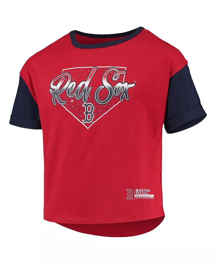 Эта очаровательная футболка Bleachers дает вашему ребенку новый взгляд на экипировку Boston Red Sox. Она имеет удобный дизайн с заниженной талией и заниженную кромку для дополнительной защиты. Яркая графика Boston Red Sox дополняет эту футболку для игрового дня, который будет таким же стильным, как и ваш юный фанат.