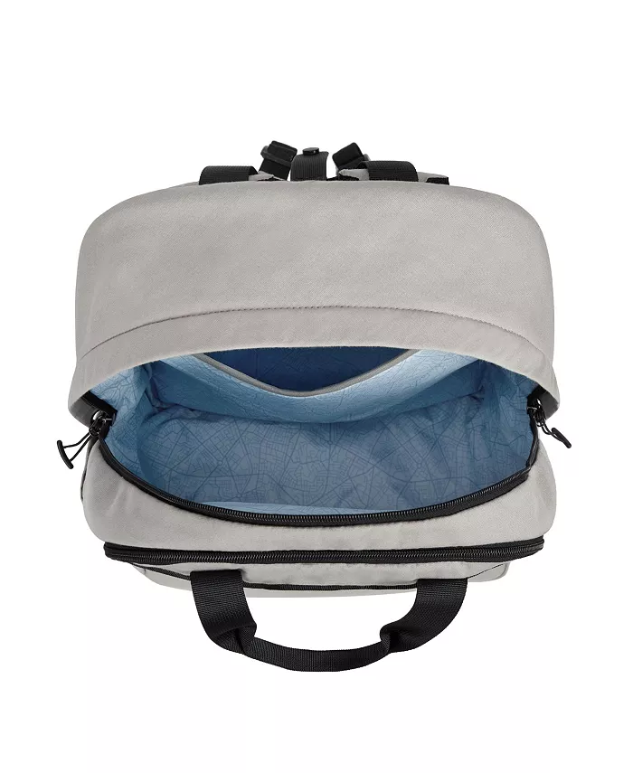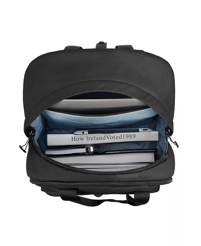 Широко открывающееся внутреннее отделение включает мягкий чехол для ноутбука или планшета с диагональю 15,6 дюйма.