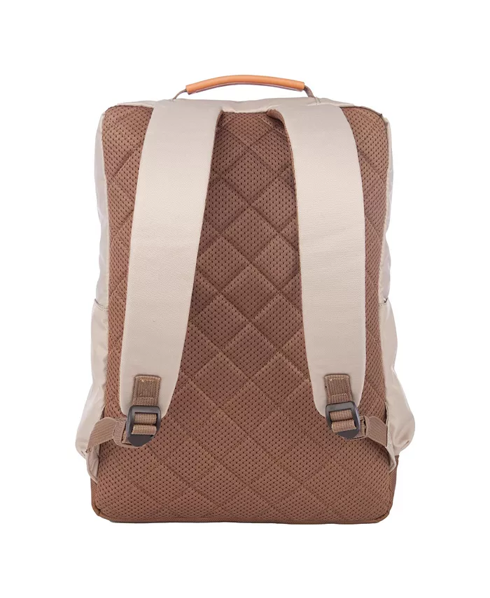 Дизайн включает в себя обтянутую кожей ручку для переноски и кожаные застежки-молнии, сочетающие стиль с функциональностью. Для удобства во время ношения рюкзак оснащен мягкой, дышащей сетчатой задней панелью со стеганым рисунком. Мягкие, регулируемые плечевые ремни включают дышащую сетку на нижней стороне, что обеспечивает удобную посадку даже при длительном использовании. Добавляя нотку изысканности, кожаная крепежная квадратная деталь украшает внешнюю часть. Рюкзак предлагает достаточно места для хранения с двумя открытыми боковыми карманами, двумя надежными передними карманами на молнии и большим основным отделением с мягким чехлом для ноутбука, способным вместить 15-дюймовый ноутбук, а также двумя большими открытыми карманами. Внутри дополнительный карман с организацией имеет три высоких кармана, карман с клином, подходящий для телефона, и поводок для ключей, что позволяет легко получить доступ и организовать необходимые вещи во время движения.