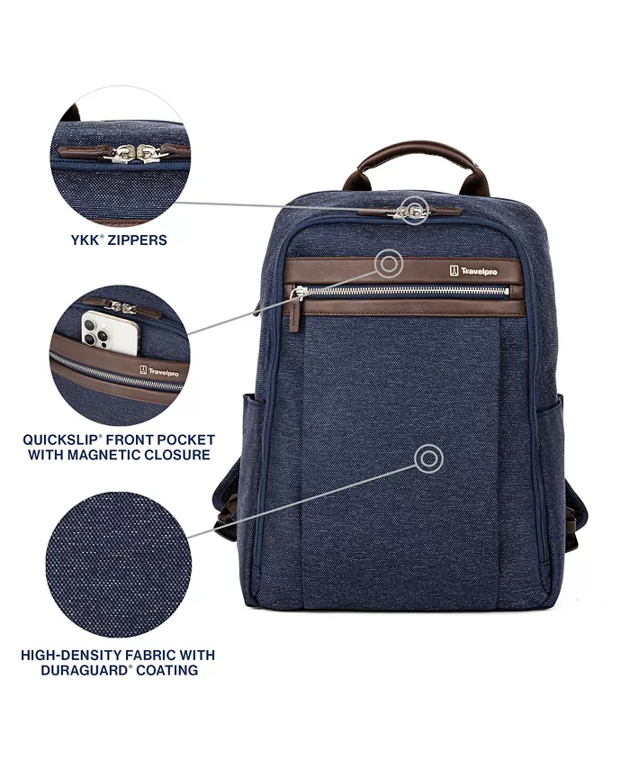 Размеры продукта: 6" Д x 12" Ш x 16" В Мягкий чехол для ноутбука размером до 16 дюймов и мягкий чехол для планшета размером до 12,9 дюймов обеспечивают встроенную защиту для электроники Молнии Yoshida Kogyo Kabushiki Aisha YKK обеспечивают ровность, плавность хода и исключительную долговечность Организационные отделения для хранения шнуров питания, внешних аккумуляторов и других повседневных вещей Внешние боковые карманы идеально подходят для бутылок с водой или зонтика. Передний карман Travelpro Quickslip с магнитной застежкой идеально подходит для надежного хранения и легкого доступа к мобильному телефону или другим необходимым вещам. Карман Travelpro ID Theft Block защищает кредитные карты и паспорта от потери и кражи личных данных. Детали из натуральной кожи и верхняя ручка обеспечивают изысканность и исключительную долговечность. Задний тканевый ремень крепится вокруг выдвижной ручки чемодана Rollaboard или Spinner для надежного штабелирования и свободного перемещения Ограниченная пожизненная гарантия Вес: 2,2 фунта. Полиэстер Протирать начисто