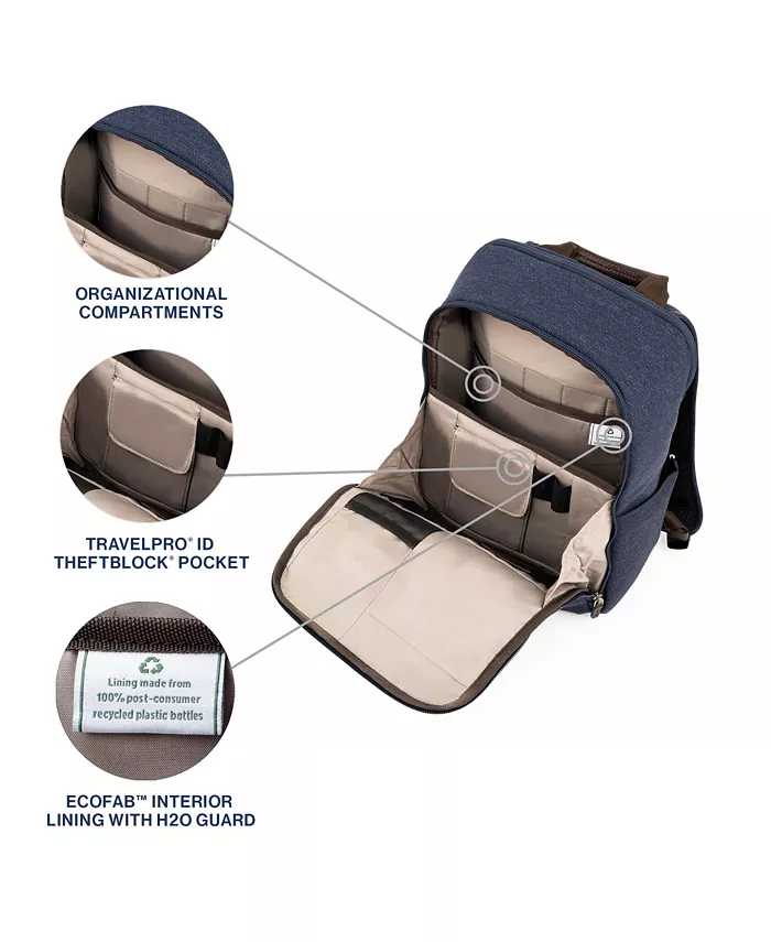 Благодаря более тонкому стилю и возможности упаковать много вещей многофункциональный рюкзак Travelpro Platinum Elite Slim Backpack станет идеальным компаньоном для повседневного использования, независимо от того, бегаете ли вы между работой, домом, школой и спортзалом или просто бегаете по делам. Этот рюкзак, созданный для частого и длительного использования, имеет внутреннюю подкладку Fabricated Ecosystem ECOFAB, которую легко чистить и которая сделана из пластиковых бутылок, и сверхпрочную, высокоплотную внешнюю ткань, обработанную для защиты от пятен и истирания. Вставки из натуральной кожи добавляют изысканности. Варианты переноски включают кожаную верхнюю ручку, эргономичные регулируемые плечевые ремни и встроенный задний ремень, который скользит по удлинительной ручке чемодана на колесиках для надежной укладки.