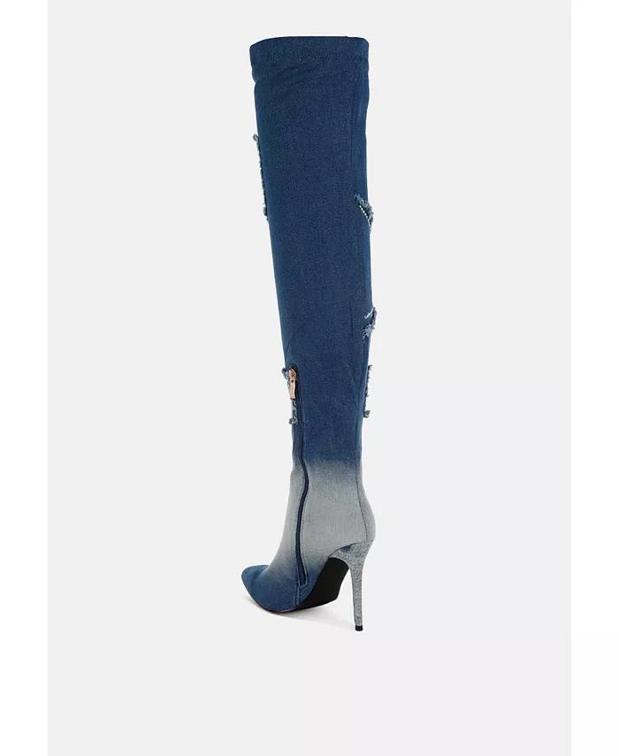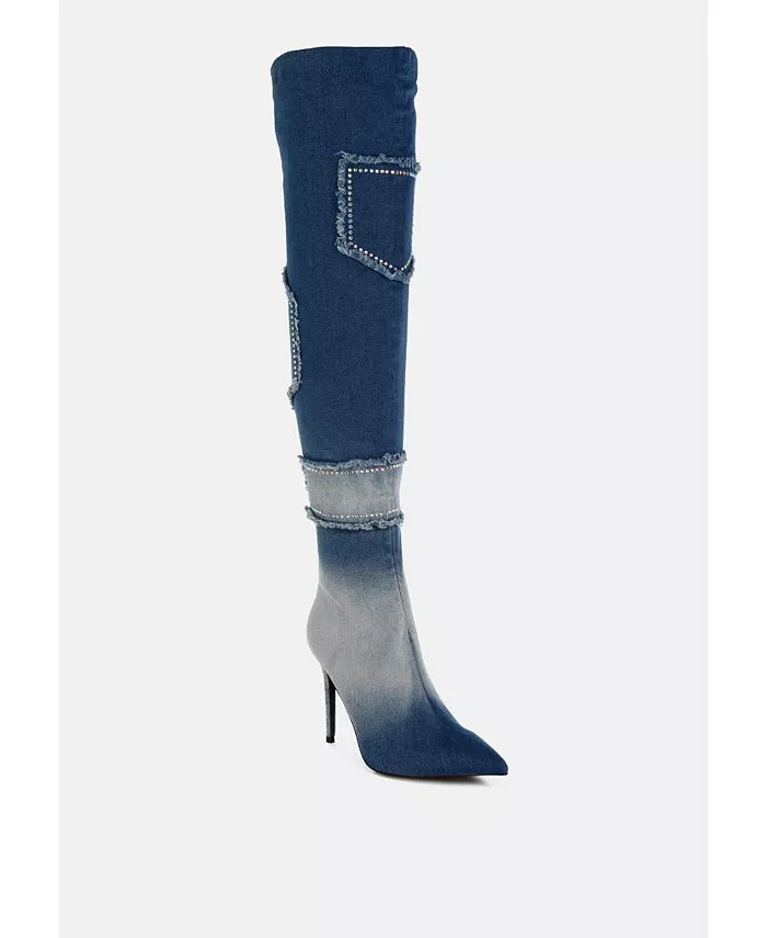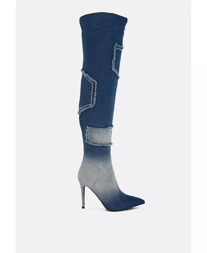 Ботфорты Eilish Rhinestones из денима с камнями London Rag, синий