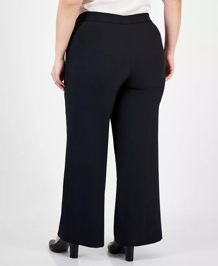Эти широкие брюки от Tahari ASL, созданные для фигур plus-size, выглядят очень элегантно благодаря чистым, строгим линиям и изящной отделке карманами.