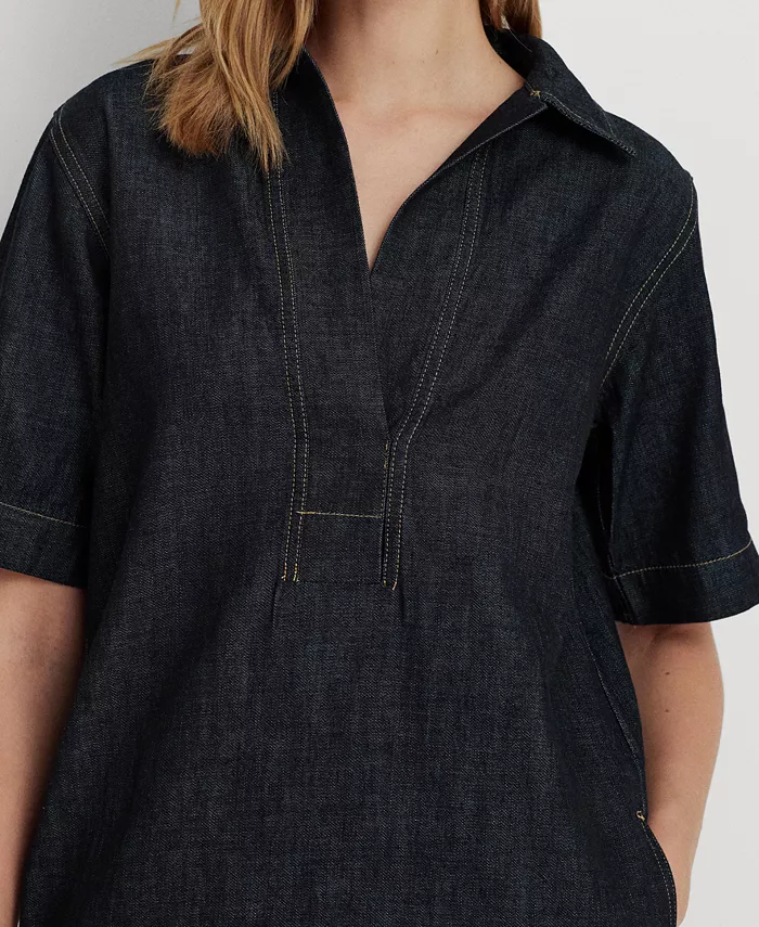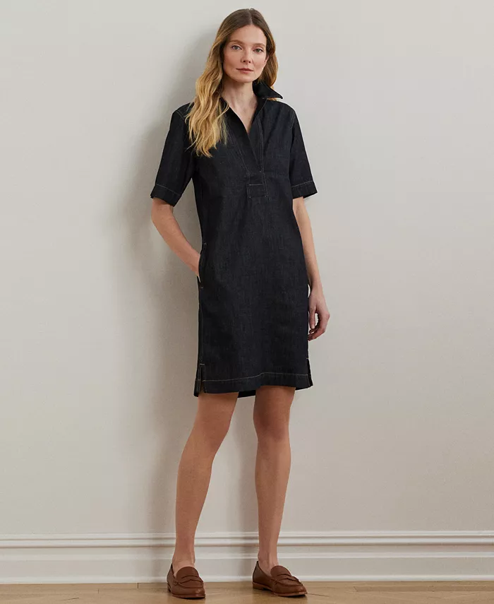 Джинсовое хлопковое платье-рубашка Lauren Ralph Lauren, синий