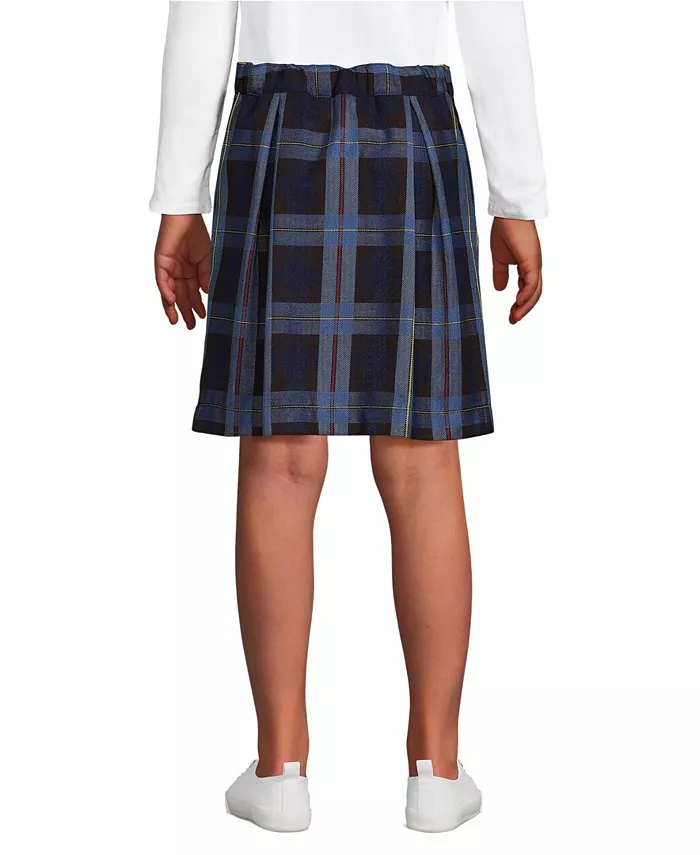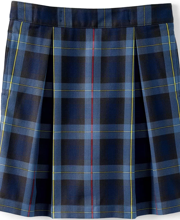 Юбка-шорты в клетку для девочек школьная, длина до колена Lands' End, синий