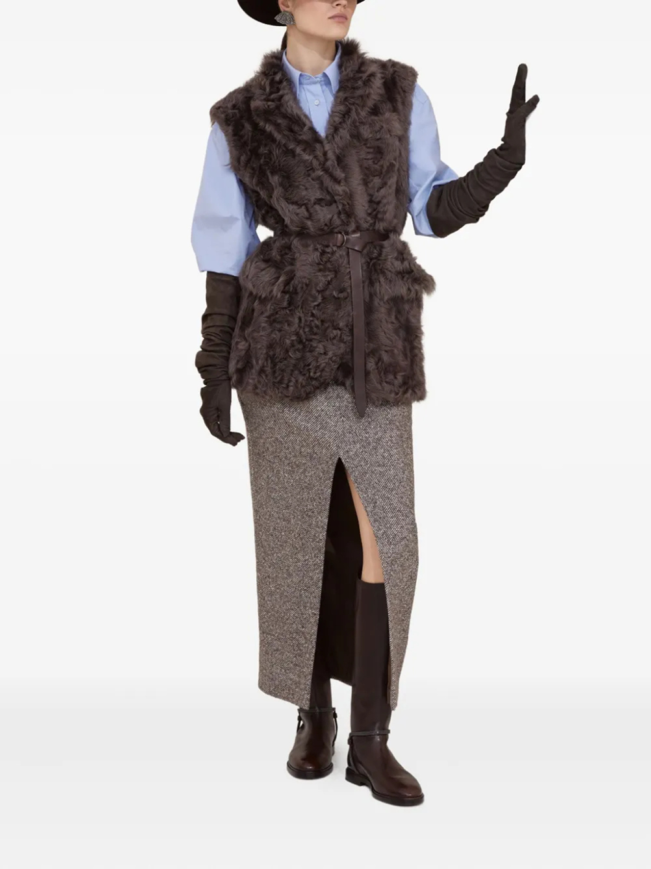 Brunello Cucinelli юбка макси с разрезом спереди, коричневый
