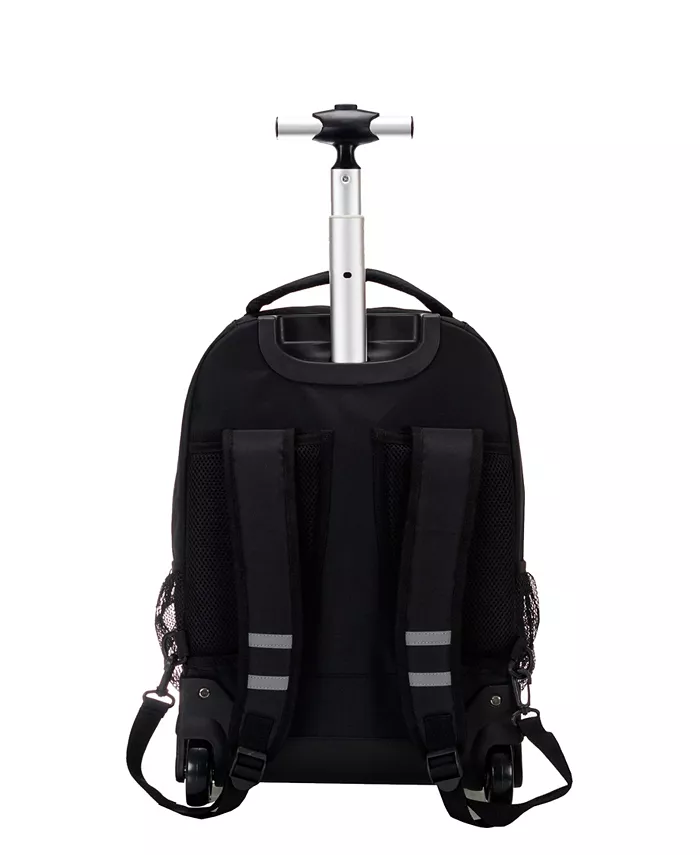 Рюкзак на колесах с колесами для скейта и выдвижной Т-образной ручкой. 2 кармана на молнии спереди сумки, в меньшем из которых встроен органайзер. Основное отделение на молнии имеет мягкое отделение для ноутбука и два сетчатых боковых кармана. Тканевая ручка сверху и прочная выдвижная Т-образная ручка с эргономичной рукояткой рассчитаны на длительный срок службы.