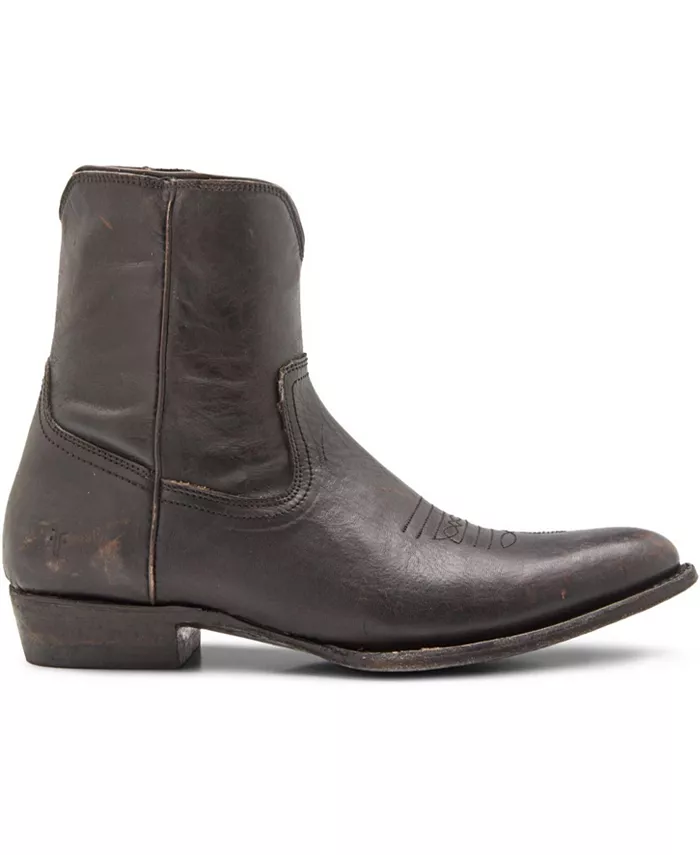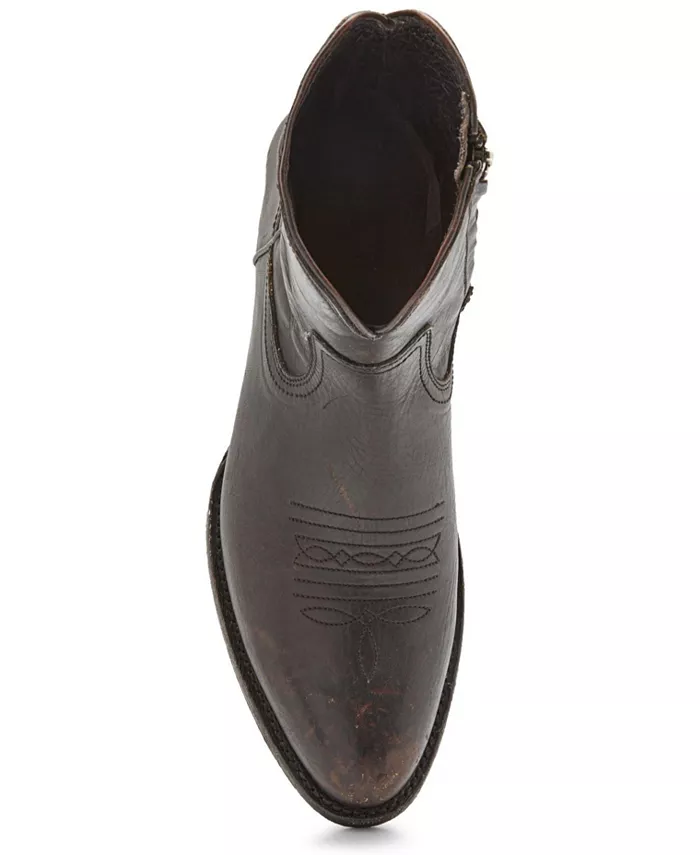 Эти ботинки основаны на оригинальном стиле вестерн в современной интерпретации. Состаренная промасленная замша способствует образованию грубой уникальной патины со временем, поскольку вы будете носить эту пару долгие годы. Особенности дизайна включают в себя прострочку на носке, фестончатую верхнюю линию и классическую форму каблука вестерн с рантом Goodyear. Застежка-молния сбоку.