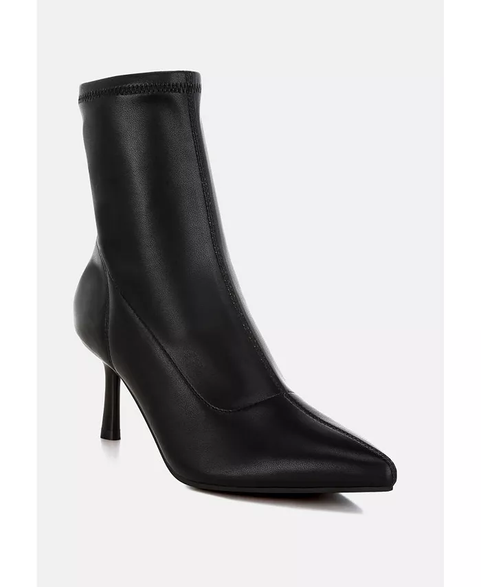 Классные сапоги-носки предназначены стать вашим новым основным предметом гардероба. Эти удобные сапоги-носки с отделкой из искусственной кожи, с острым носком и изящным каблуком-шпилькой смягчают общий вид, создавая элегантный образ. Сочетайте их с платьем-халатом миди и квадратной сумкой.