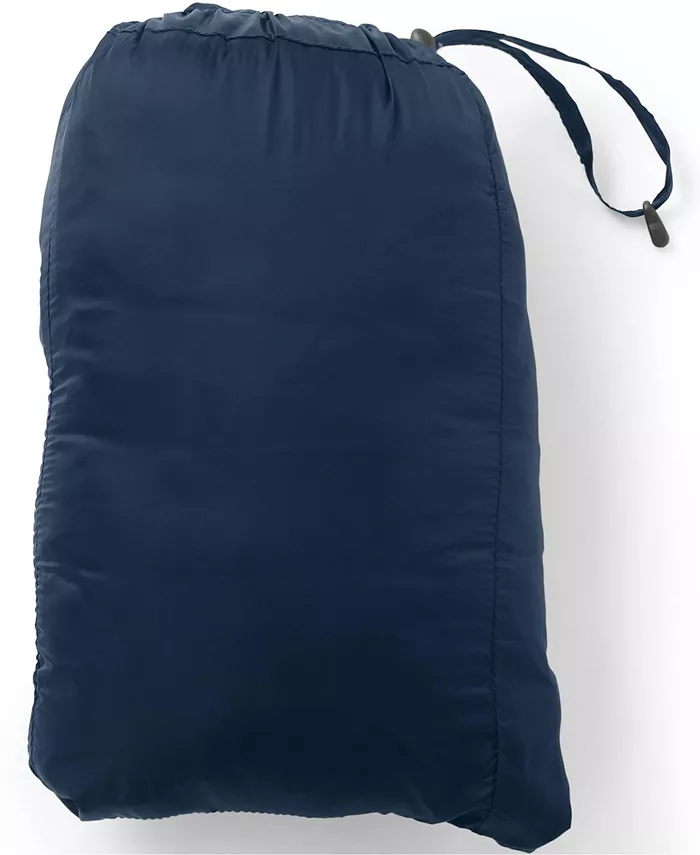 Упаковывается в собственный внутренний карман для удобства переноски, когда не надет, шнур-застежка внутри кармана надежно закрывает упаковываемую сумку