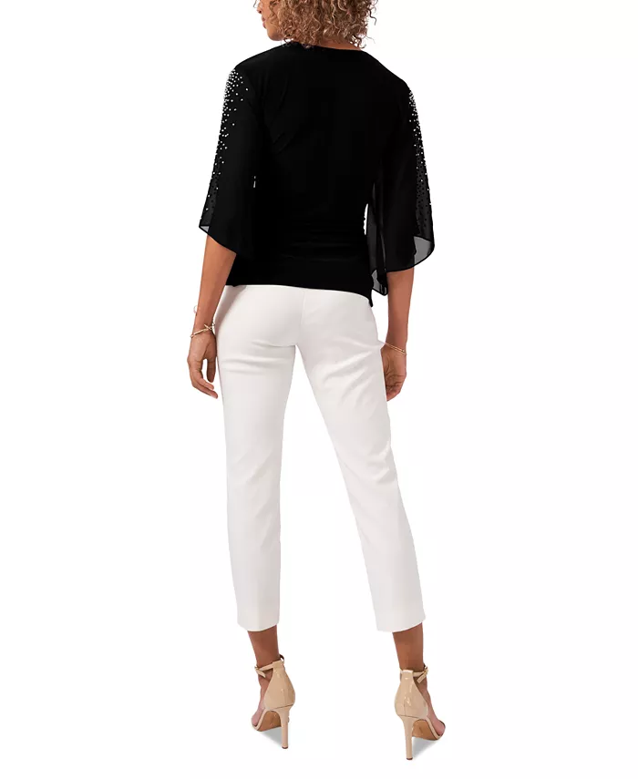 Топ с шифоновыми рукавами и декоративными элементами MSK, черный