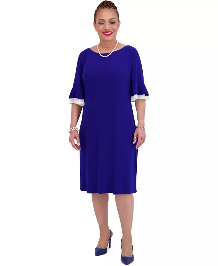 Женское платье-рубашка с рюшами на рукавах, Regular & Plus Size Kasper, синий