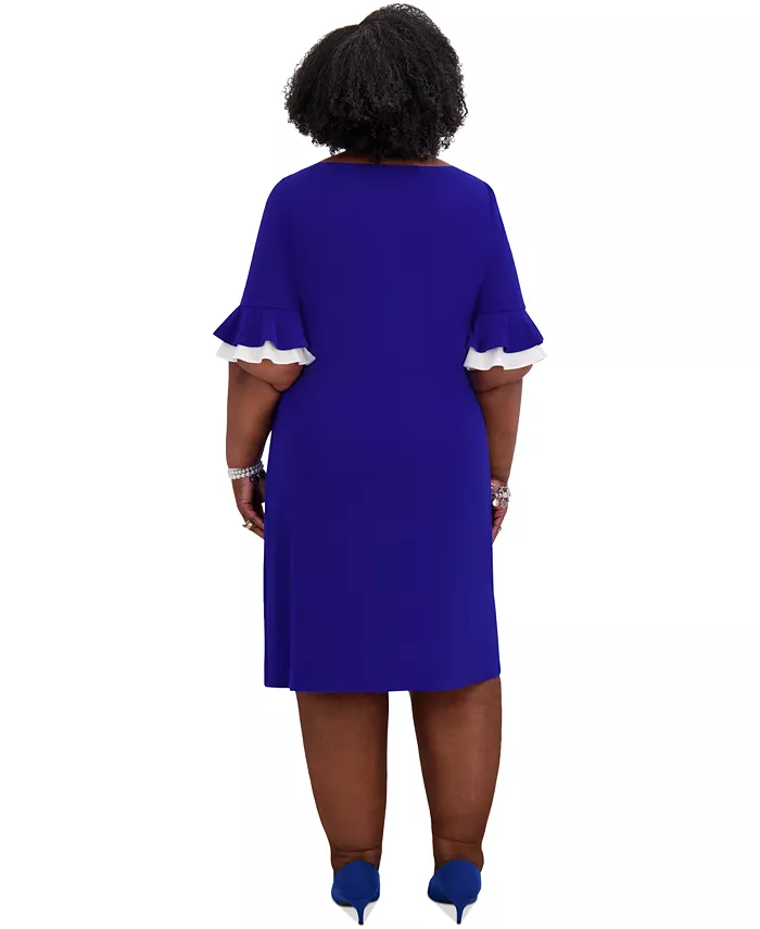Женское платье-рубашка с рюшами на рукавах, Regular & Plus Size Kasper, синий 4 275₽