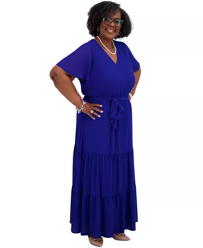 Женское платье-трапеция с оборками на рукавах, стандартный и большой размер
