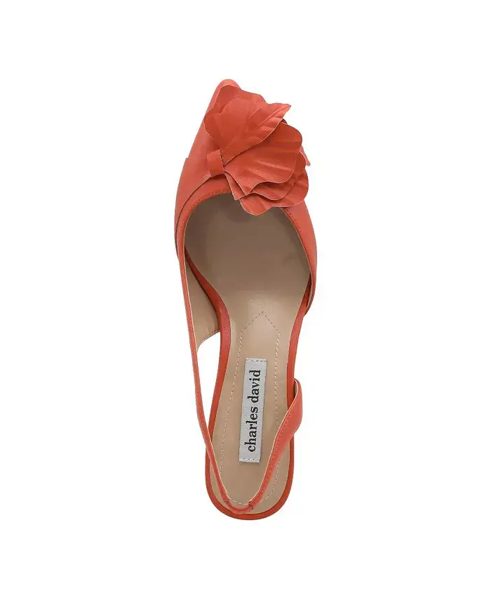 Декорированная передняя часть и расклешенный каблук дополняют современную модель с эластичным ремешком на пятке для надежной посадки.