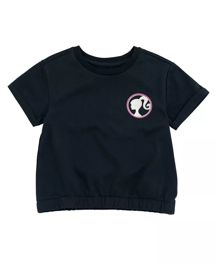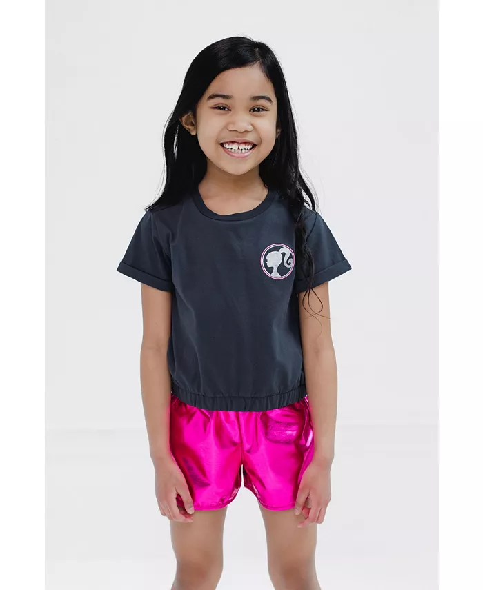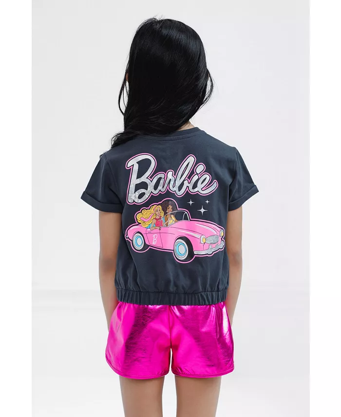 Комплект одежды для девочек: футболка и шорты-кроп топ Barbie, черный