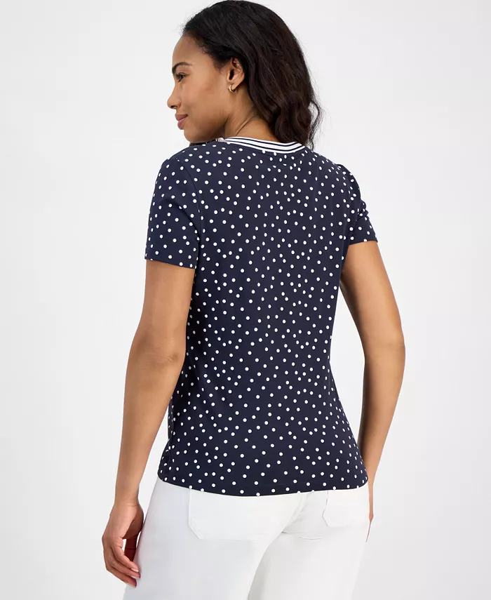 Классический узор в горошек придает изюминку этому топу с V-образным вырезом от Nautica Jeans.
