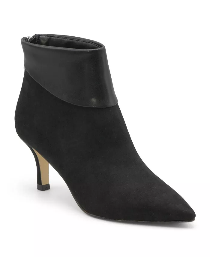Контрастная отворотная манжета подчеркивает красоту этих ботильонов на коническом каблуке.