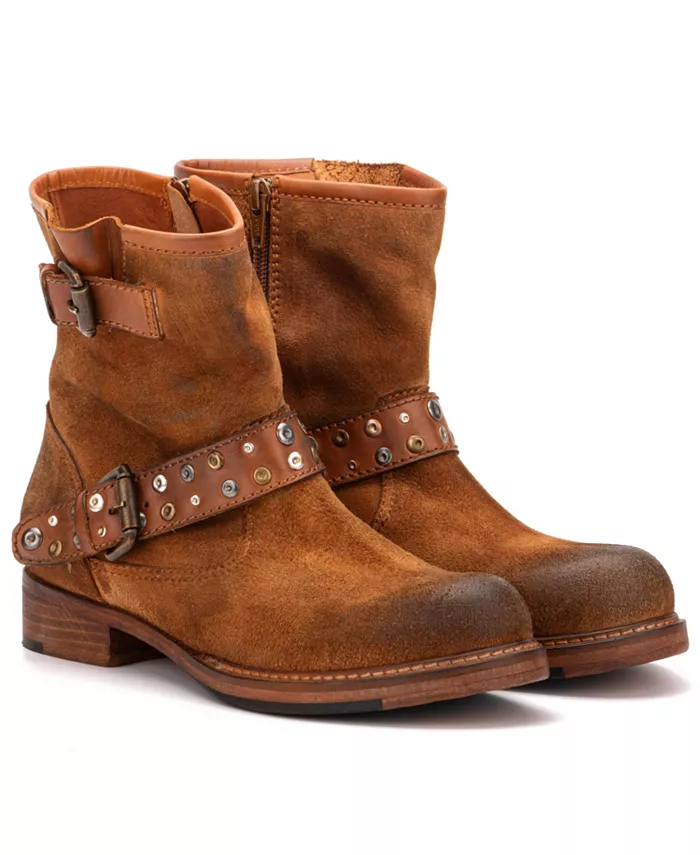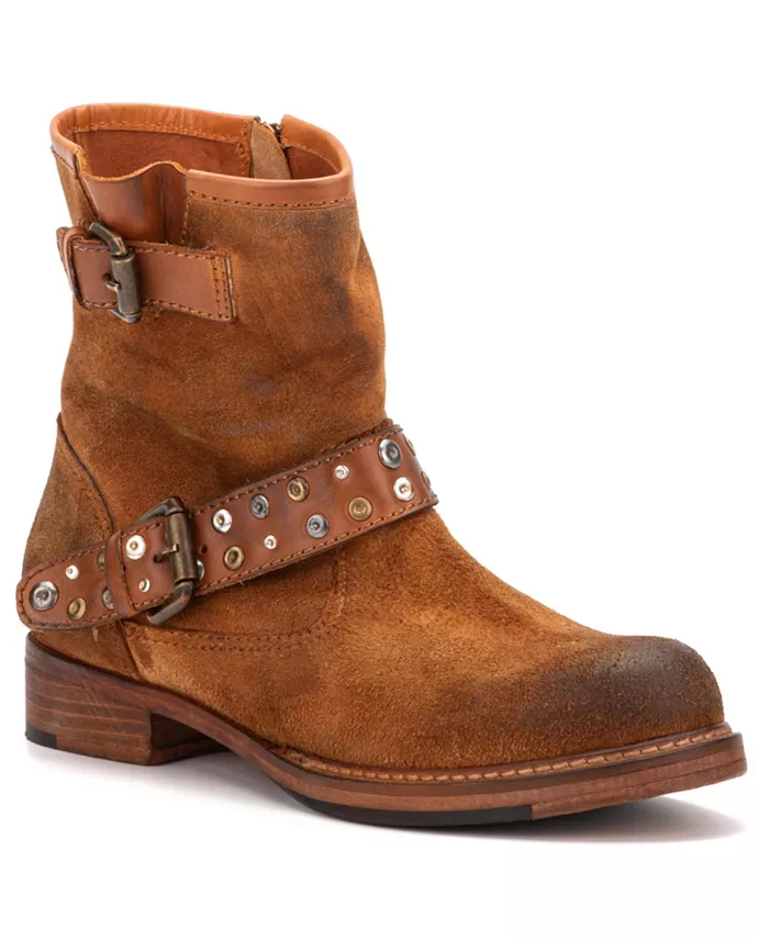 Стиль. Взгляните на свою лучшую модель с ботинками Miriam от Vintage Foundry Co с заклепочной пряжкой спереди и еще одной сзади. Это сочетание верха из полированной кожи с круглым носком и потертого стиля заставит любого любителя ботильонов взглянуть на них еще раз.