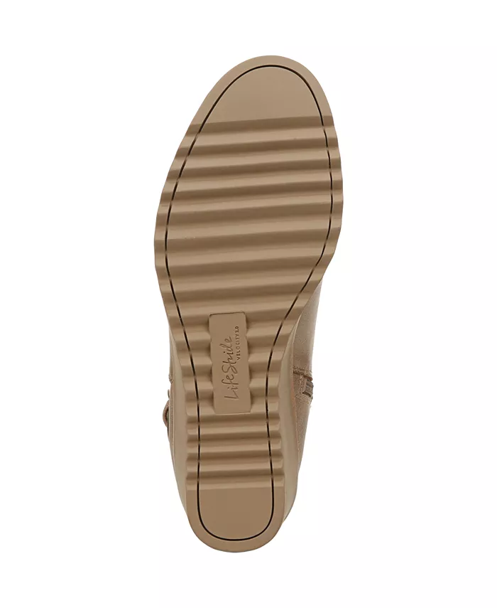 Эти женские ботинки на танкетке с яркими деталями и непревзойденным комфортом — круглосуточный фаворит. Верх из искусственной кожи с круглым носком, вельветовая эластичная трикотажная задняя панель, боковая молния, ремешок с декоративной металлической пряжкой и рифленая подошва. Пакет Soft System обеспечивает поддержку, гибкость и амортизацию в течение всего дня. Получите непревзойденный комфорт с Velocity 2.0, отличающейся роскошной подкладкой, превосходной амортизацией и премиальной стелькой с амортизацией и распределением давления. Подошва с цепкостью обеспечивает дополнительную устойчивость. Высота ботинка 3,62 дюйма, окружность 10,51 дюйма. Примечание: измерения основаны на размере 6M. На каждый размер больше высота голенища увеличивается на 0,12 дюйма, окружность на 0,20 дюйма. Каблук-танкетка Just Right Height 2 дюйма.
