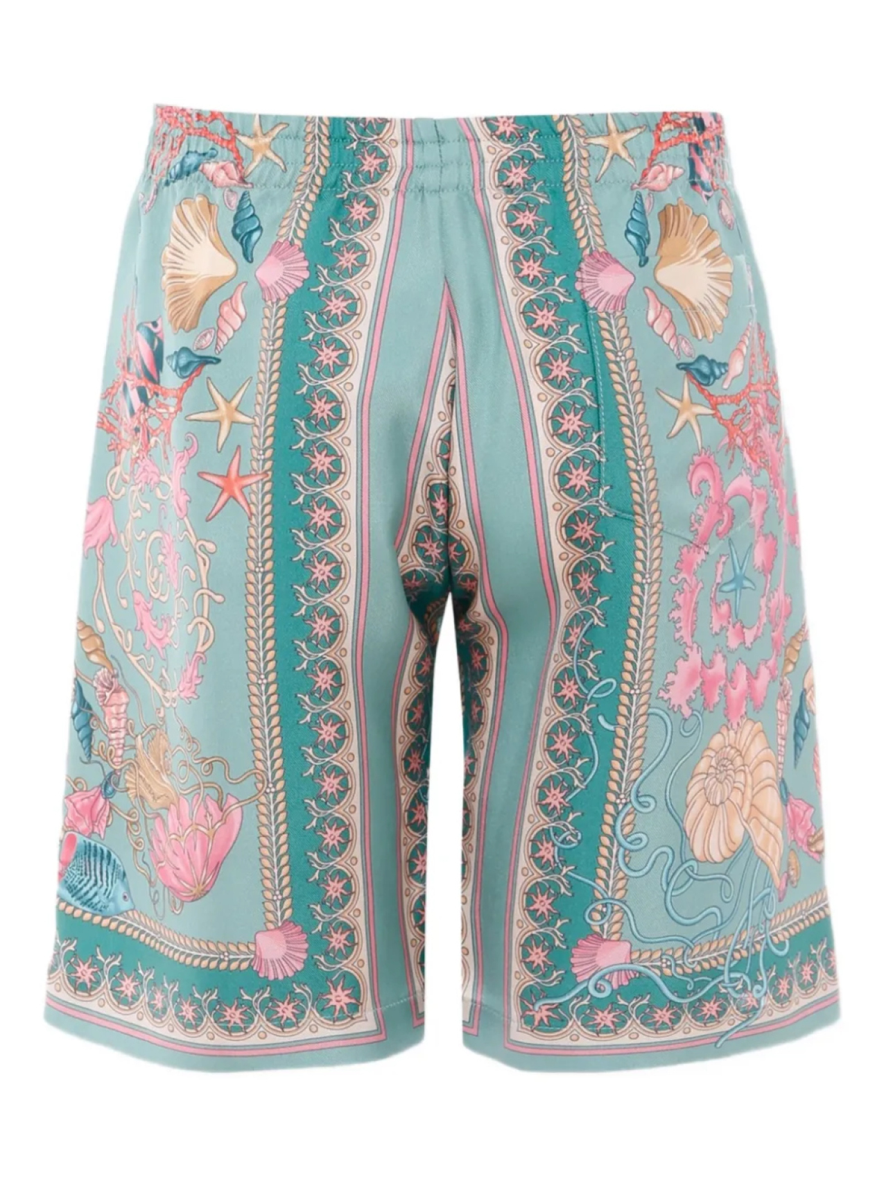 Шорты Versace Kids из шелка с узором в виде ракушек, синий