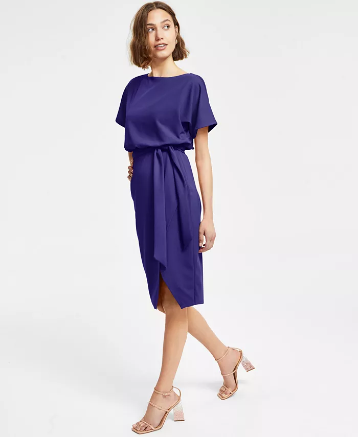 Платье-футляр с поясом и запахом