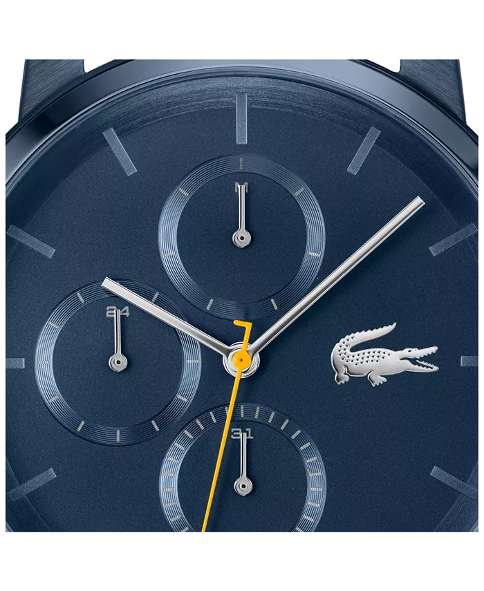 Идеальный компаньон для активного образа жизни, новые Lacoste Replay — это современные многофункциональные часы, сочетающие в себе спортивную эстетику и городской стиль. Часы предлагаются в различных цветовых вариантах, имеют гладкий корпус с кнопками, оснащены элегантным сетчатым браслетом или изысканным звеньевым браслетом. В выбранных цветовых вариантах секундная стрелка яркого цвета, а вертикально расположенные штампованные нижние циферблаты и фирменный крокодил Lacoste из накладного металла дополняют современный циферблат, создавая минималистичный, отличительный вид. Артикул: 2011408.